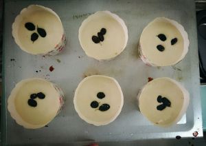 成品放上肉松挤上果酱,放几个葡萄干做装饰~