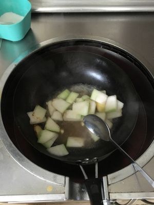 1 锅中加入冬瓜片翻炒,为避免冬瓜炒糊,适当加一点热水。2 翻炒一会儿,加入炒好的羊肉片,加一片姜,倒热水没过食材,大火煮开转小火煨。3,汤中加一勺盐(要根据食材和水的多少适度放盐),加一点点鸡精。