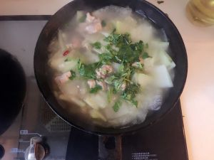 加入冬瓜片煮至再次沸腾,加入适量盐和香菜