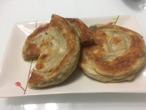 出锅啦~超级香脆哦!!不爱吃葱的人也会爱上的葱油饼!!以上分量做了5块葱油饼