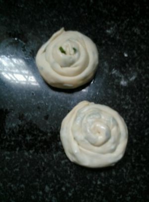 团成一团,不要擀得太薄,葱油饼有一点厚度比较好吃