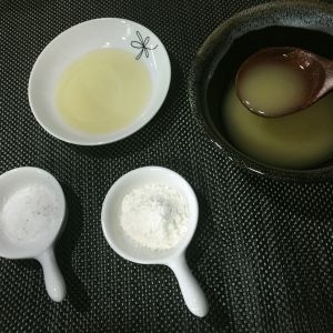 15克面粉,5克盐,50克色拉油拌匀调成油酥备用。