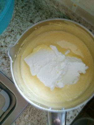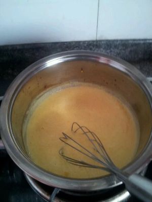 蛋黄加炼乳,小火熬成糊糊。
