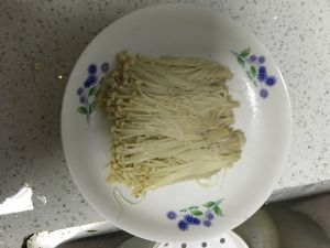 待水烧开后,将金针菇放入锅中(一定要平铺,好摆造型)
