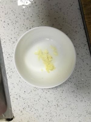炒好后,放入装有大蒜末的碗中