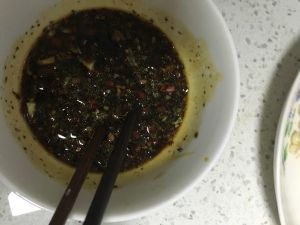 4、醋、酱油、盐、辣椒油调成汁(醋和生抽比例为2:1);