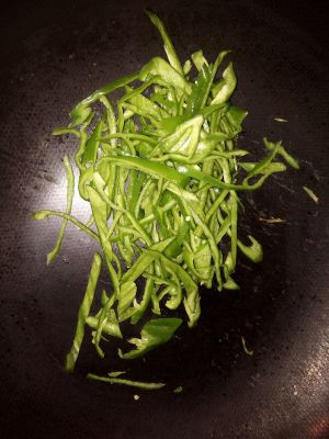 青椒切丝,肉切片备用(如果是瘦肉就用淀粉加少许酱汁调味),炒的时候也不用再放其他调料