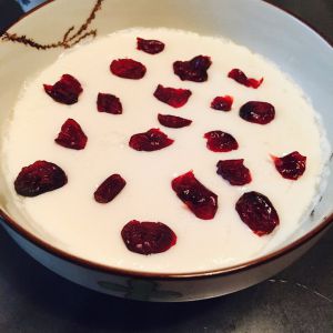 蒸20分钟,拿起来晾凉,加蔓越梅!其实可以各种水果啊什么的都可以。放冰箱更好吃
