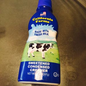 流出来的牛奶与炼乳和蛋清合体,搅拌均匀