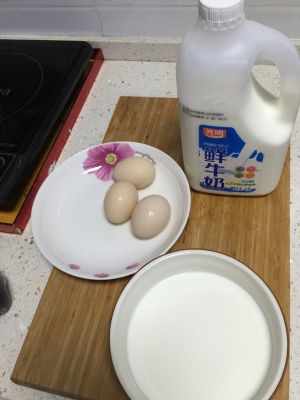 首先准备三个鸡蛋,用分蛋器将蛋黄和蛋清分离,只留蛋清,牛奶倒约300ml。