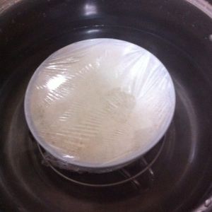 用保鲜膜封好碗口,隔水煮20分钟,不开盖焖5~10分钟,然后可以了。