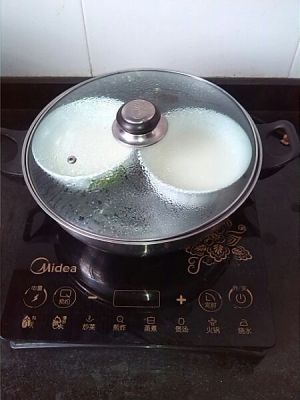 把牛奶放入锅中煮至沸腾(煮的过程中,要不停地搅拌,不要有太多的泡泡,有的话就要及时去掉)