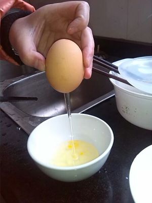 将蛋清和蛋黄分离(我们只要蛋清,蛋黄不要浪费了,可以煎个蛋,做个三明治)
