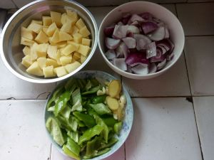 青椒,土豆,洋葱切块。大蒜姜切好备用