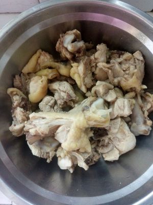 鸡腿砌块,锅里水烧开,放鸡块煮几分钟