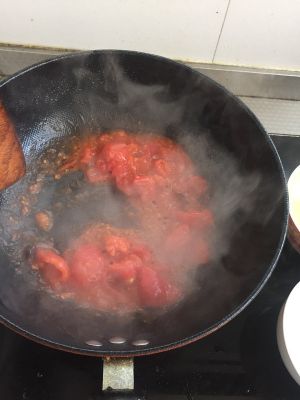 倒入西红柿蕃茄酱大蒜蚝油熬汁