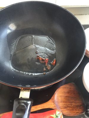 准备食材过程中牛肉就差不多煮好了,牛肉沥干水放盘中,煮的牛肉汤留着,花椒大料辣椒姜炝锅