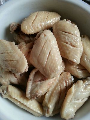 鸡翅切两刀,容易入味,缺点是接下来煎制的时候容易粘锅。可以不切口。