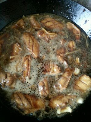 锅内放少许食用油,放红糖,炒糖色(shai)
