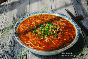 把汤水倒入粉碗内,撒上葱花即可食用,酸,辣,麻