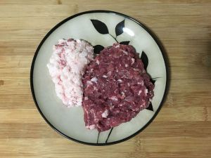 梅头肉切片剁碎,最好一半肥一半瘦,可以要前腿肉