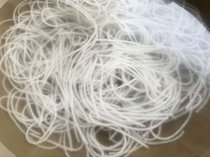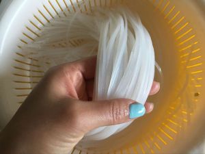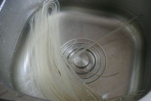 烧开一锅清水 放入泡软的榨粉煮至筷子可以夹断,立刻捞出过冷开水