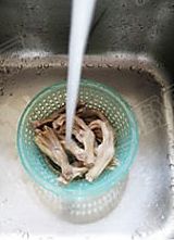 捞起后清水冲一下,沥干备用。