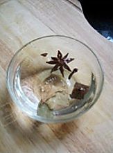 八角、香叶、桂皮,丁香洗干净,用清水泡一下。