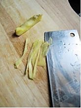 姜去皮,洗净,切成丝。