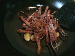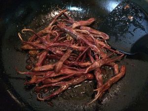 翻炒几下使鸭舌上色。