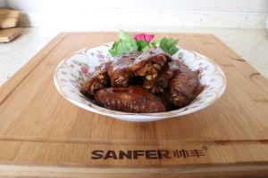 汤汁粘稠后,把鸡翅拣出装盘,在将锅中剩余汤汁倒入盘中,即可