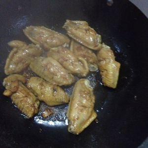 锅里放少许油、把焯水的鸡翅在锅里煎一下、煎至金黄即可!煎一下更香甜可口!哈哈
