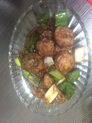 锅放油少许下泡椒末 泡姜末 泡蒜末 细红油豆瓣酱炒香,下高汤,韮菜末,木耳末,盐,味精,鸡精,食油,蠔油,香醋,花椒油收汁
