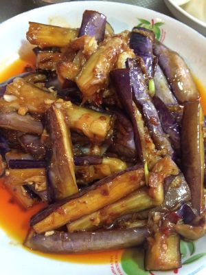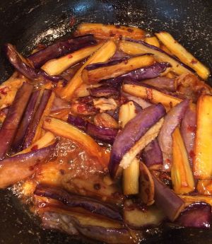 锅中底油,下豆瓣酱,小火炒出红油放一半蒜沫、葱末,两片姜片爆香,然后放入炸好的茄子翻炒,调味:放生抽,盐,白糖,(醋要晚些放)这时放少许水炖煮两分钟,让茄子入味,出锅前烹醋,放余下的蒜沫和葱末炒匀即可。(如果汤汁未收干,可调些水淀粉)