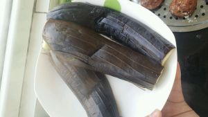 茄子洗净切条,上锅蒸10分钟,软了就好