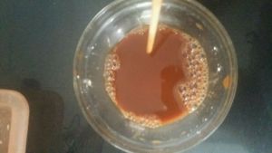调一个鱼香汁:1勺白砂糖、1勺味极鲜、半勺蚝油、10滴老抽、1勺醋、半碗水