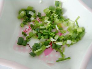 肉末调入糖、生抽、老抽、生粉、香麻油拌匀,稍加腌制;红椒去蒂去籽切碎丁,大蒜小葱切茸,将1汤匙红油豆瓣酱剁细备用。