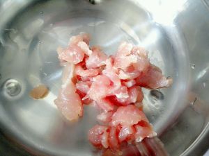 我用的是肉丝。在肉里加入适量的生抽和一点点淀粉,腌制5分钟。