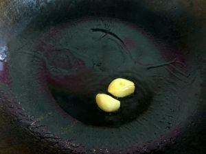 锅里倒油,炒香蒜瓣,然后将蒜瓣盛出,不要