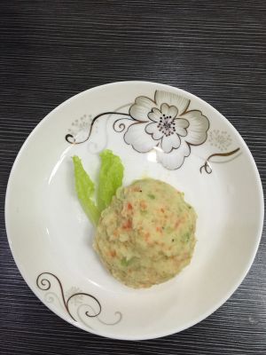 将土豆色拉装盘,建议搭配丘比培煎芝麻酱食用味道更佳。