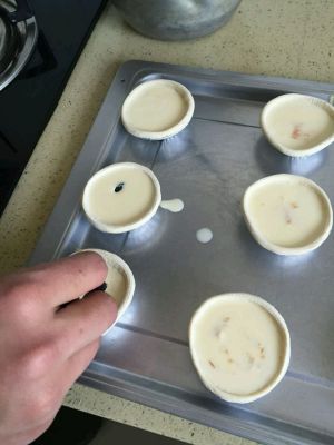 倒入解冻好的挞皮中,约七分满(我又做了一倍,原来是只够3份的)