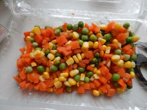 先将胡萝卜、香菇切丁,热锅倒油中火把香菇炒出香味。