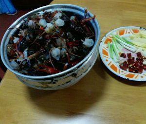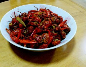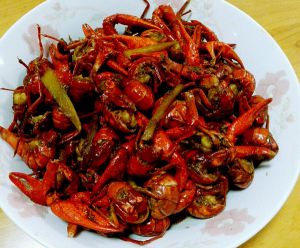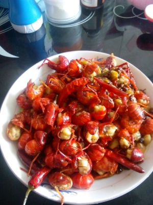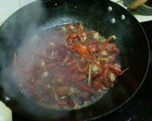 热锅冷油放葱姜蒜干辣椒煸香,下小龙虾进去翻炒几分钟,变色后加清水,水刚淹至小龙虾为宜,盖盖,煮开。