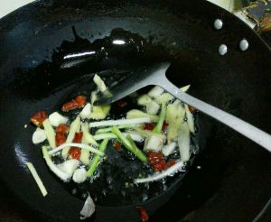 煮开几分钟后加适量料酒,接着再煮几分钟让料酒挥发,加入老抽调色,再盖上锅盖焖煮,煮至水干大半大概需要一刻钟,中间要揭开盖用锅铲翻动几下,使受热均匀,并加盐调味。