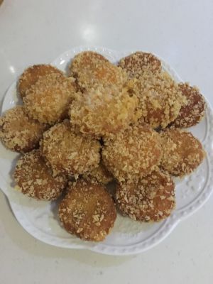 成品,外脆里嫩,甜中带点咸味,个人比较喜欢,大家也可根据自己的喜好加入不同的调料。第一次下厨,对自己还是很满意的,以后我会认真的在这条道路上前行的
