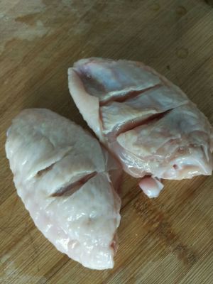 洗净鸡翅后用牙签扎出小孔。能更好入味