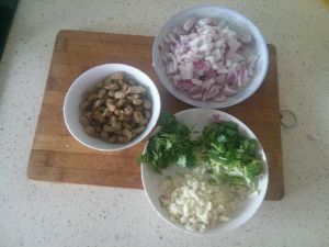 先制作蒜泥,大蒜,小杏鲍菇,生姜都切末,然后锅里放少许油放入材料还有放点剁椒哦煸透备用。