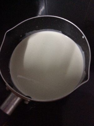 牛奶和淡奶油混合,稍加热,倒入白糖,使其充分溶化
