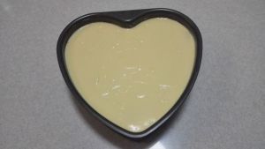 椰桨冷却后加入2后,充分搅拌均匀,再把打发好了的淡奶油加入其中充分搅拌均匀。