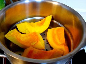 把面团分成乒乓球大小,捏成型,用勺子柄压出南瓜的纹路。加枸杞子做柄。冷水上锅蒸15分钟。